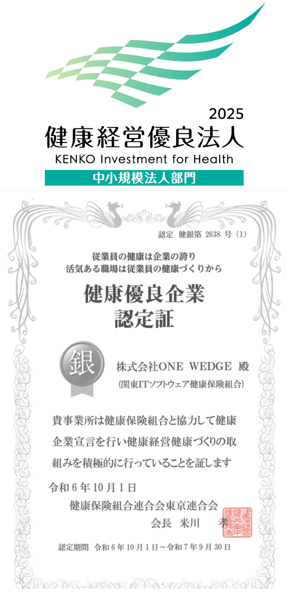 当社のテーマである、『ひとつひとつ(ONE by ONE)の事柄を、「WEDGE」として繋ぎ、真摯に向き合い創造していく』を実現する為に、従業員一人ひとりに向き合い、健康で明るく元気に生き生きと働いていることが必要です。