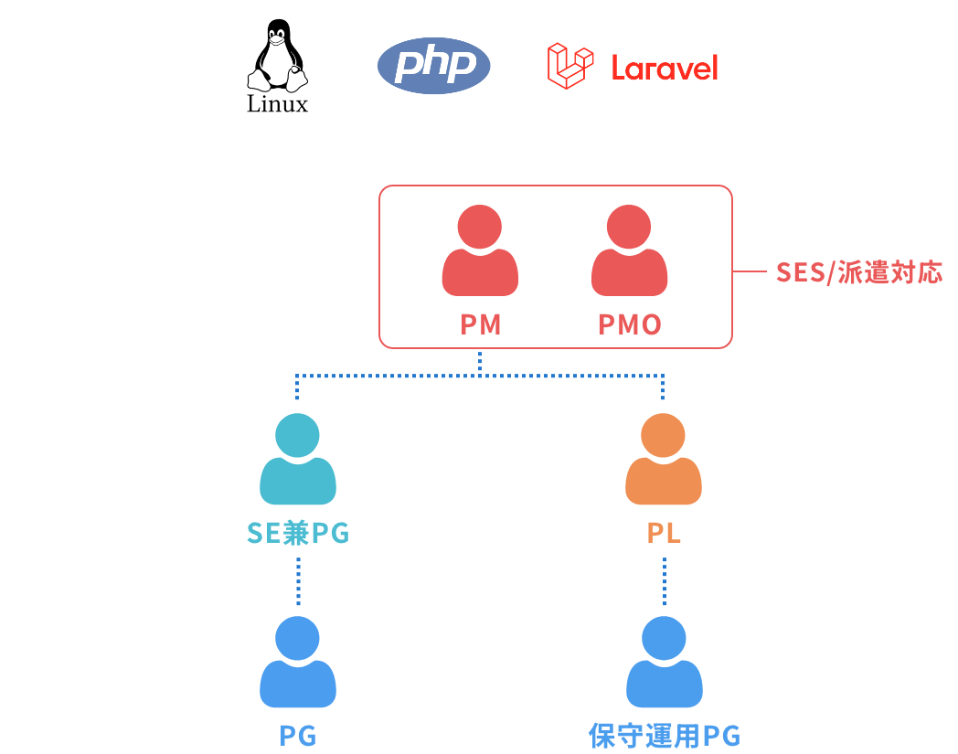 Java/PHPやフロントエンジニアの他、インフラ(AWS/クラウド系)やPMO要員など幅広いスキル層の技術者を提案可能です。最新技術にも対応できます。
